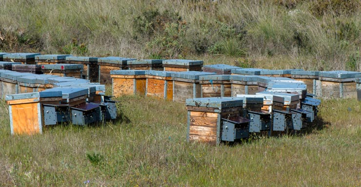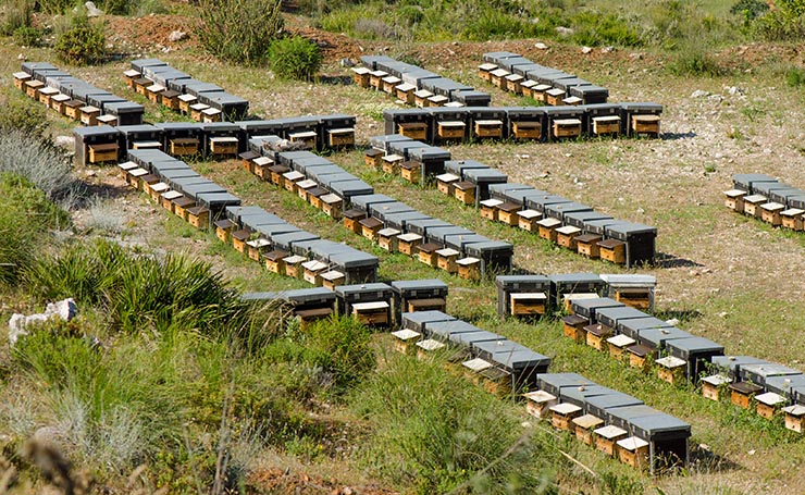 A typical sight in Spain: rows of Layens horizontal hives with a pollen collector at every entrance. But in the US, most beekeepers never harvest pollen, and those who do often use it for making protein patties for bees (see recipes in Raising Honeybee Queens), rather than enjoying this superfood or offering it for sale.