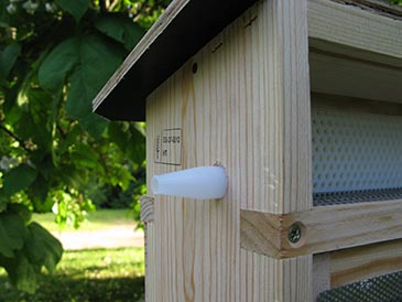 Drones that escape through the drone escape tubes cannot return to the hive because the entry holes are too small for them. If your hive has lots of drones, they may congregate at the front door in large numbers preventing worker bee entry. Check the front of the trap daily the first few days. If it’s all covered in drones, throw them into a bucket of water. I’m sorry! Tip: if you collect pollen in the summer, after the main swarming season is over, there will be few drones.