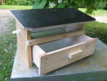 If you use Langstroth (vertical) hives, this pollen trap can be used without modification if the bottom board is flush with the hive box and does not have a landing board in the front. The vertical-hive entrance is wider than the trap – cover the gap with a piece of folded metal so bees can only enter the hive through the pollen collector door.